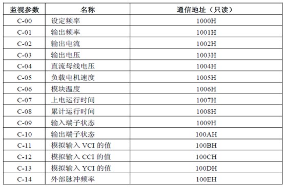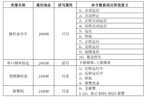 3.變頻器的控制命令和狀態(tài)通信地址如下: