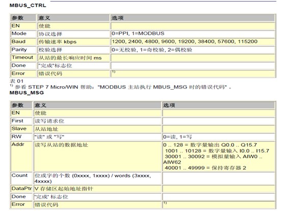 1、對(duì)于西門(mén)子PLC做主站的MODBUS通訊,需要程序庫(kù)裝有有“MBUS_CTRL”和“MBUS_MSG”指令。其下是指令的意義: