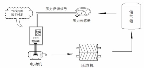 目前常見的壓縮機有活塞式、螺桿式、離心式,不論哪一種工作方式,壓縮機單位時間內產氣量是一定的,目前壓縮機都采用上下限控制或啟停式控制,也就是說,當氣缸內的壓力達到設定值的上限時,空壓機通過本身的壓力或油壓開關閉進氣閥,這種工作方式頻繁出現加載卸載,而且對電網、螺桿空壓機本身都有極大的破壞性。