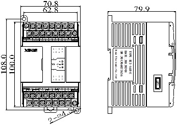 8點NPN型輸入,8點繼電器(R)或晶體管(T)或繼電器晶體管混合(RT)輸出